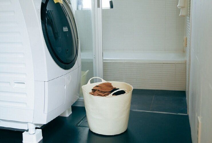 朝、家族があちこちで脱いだパジャマを拾って回るのは面倒……。「なので洗濯機の近くにかごをスタンバイ。みんなここに入れるルールにしたら、朝のひと手間が省けました」。