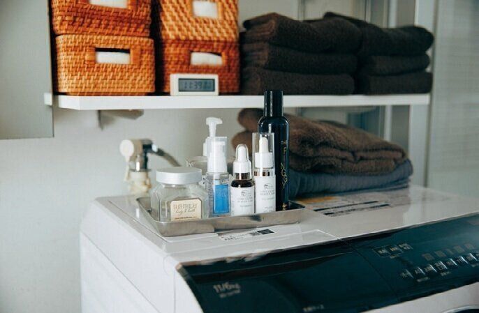 お風呂上がりにすぐつけたいからスキンケア用品は洗濯機の上