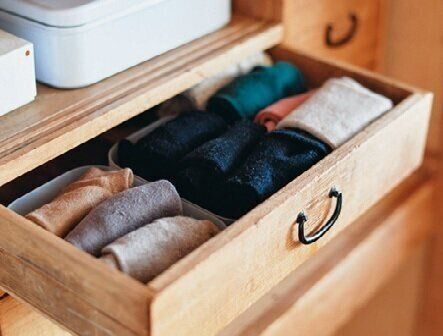 以前はたくさんの靴下を深い引き出しに入れていつもまさぐっていたけれど、春夏と秋冬各5足にしたら着替えがスムーズに!