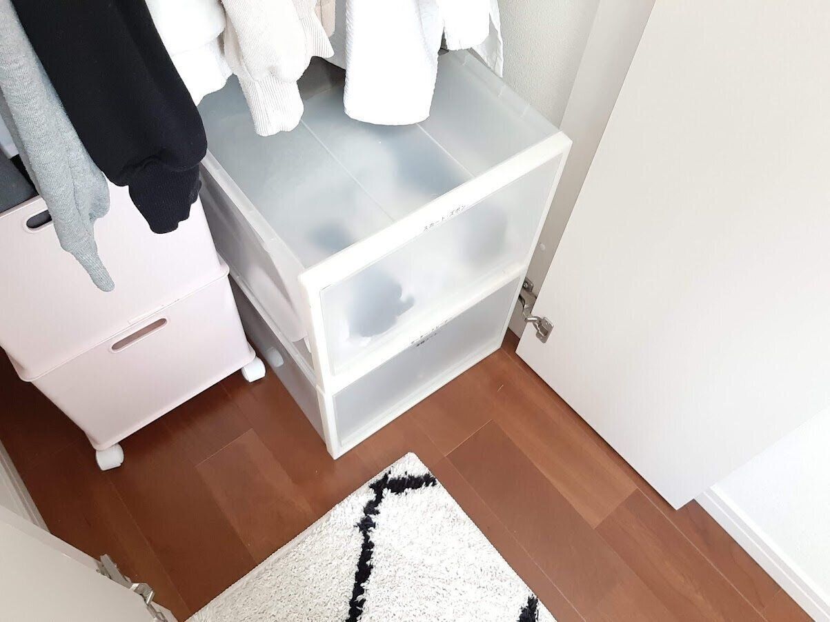 奥行きのあるクローゼットなどに引出しを置くと、手前の空いたスペースにものを置きがちです。しかし、スペースがあるからといってものを置いてしまうのはNG。