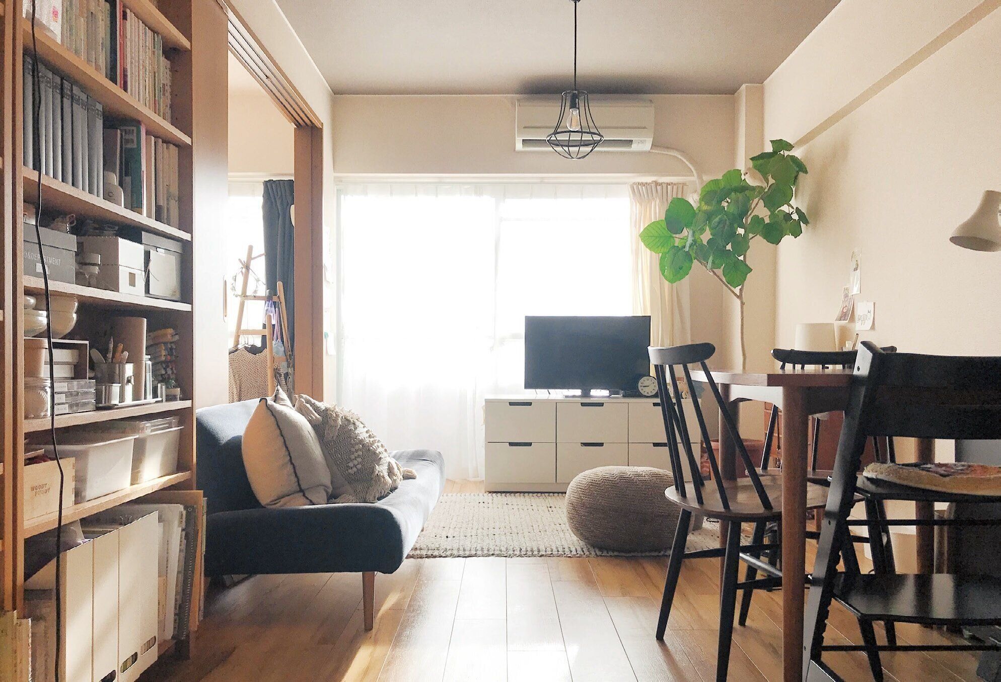 「雑貨や本など、好きな物に囲まれた空間が、わが家にとっては居心地がいいんです」。1LDKの限られたスペースで、"見せる収納"をバランスよく両立している秘訣は、以前インテリアショップで働いていたときに教わったディスプレイの基本にありました。