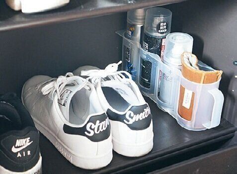 活用例3●シューズケア用品をひとまとめに。狭い靴箱にもすっぽり収まる