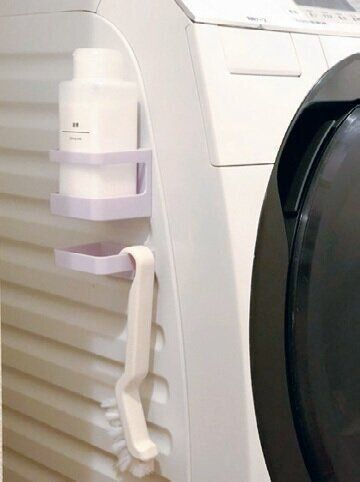 活用例3●洗剤やブラシ収納に。洗濯機横に貼って
