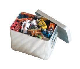 小さなおもちゃはブリキ缶に。
