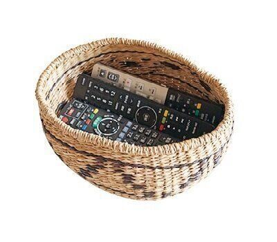 座って使うリモコンはカゴに。