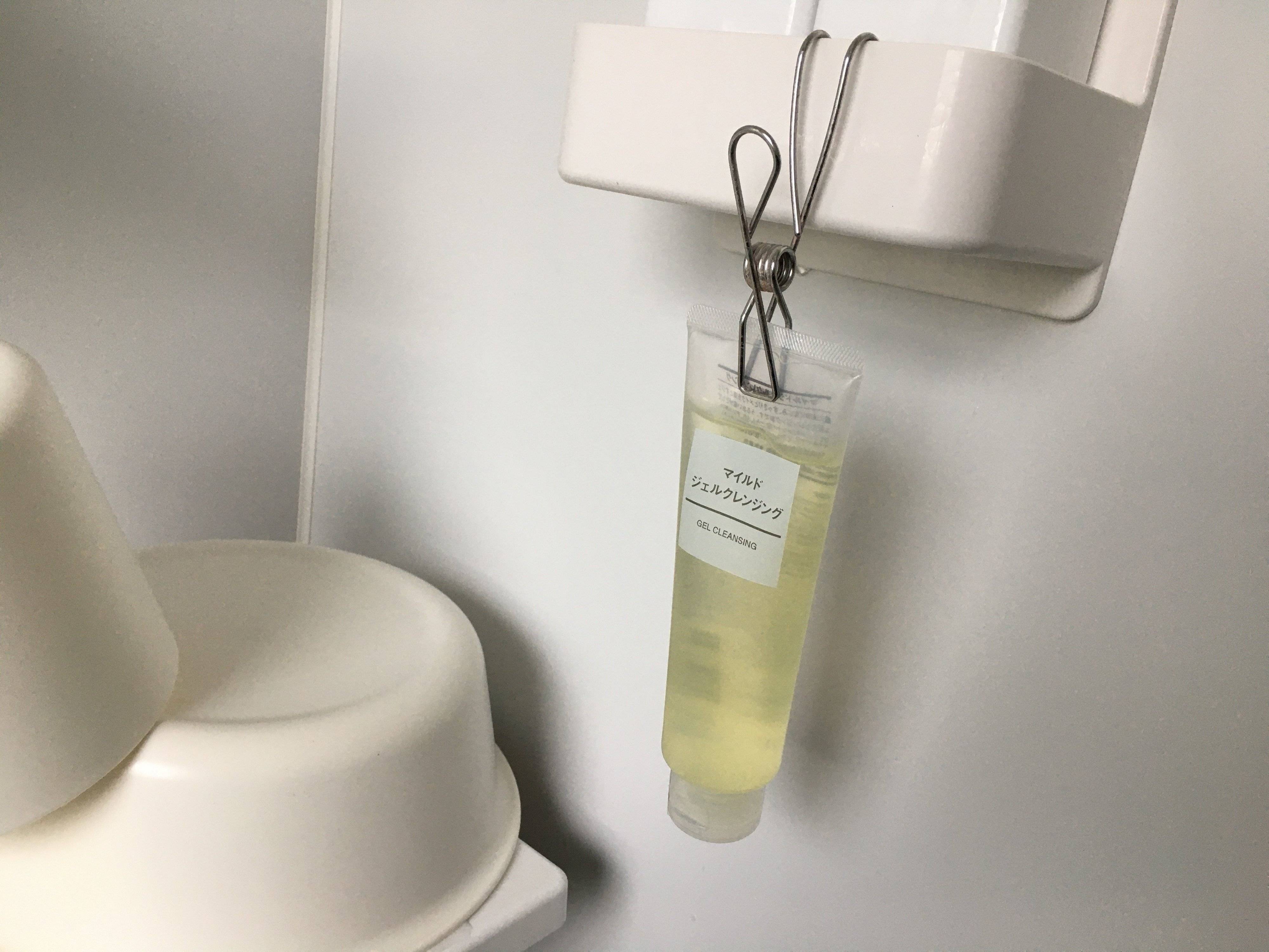 私は無印良品の「ステンレスひっかけるワイヤークリップ」を使い、クリップ部分ではさんでひっかけています。