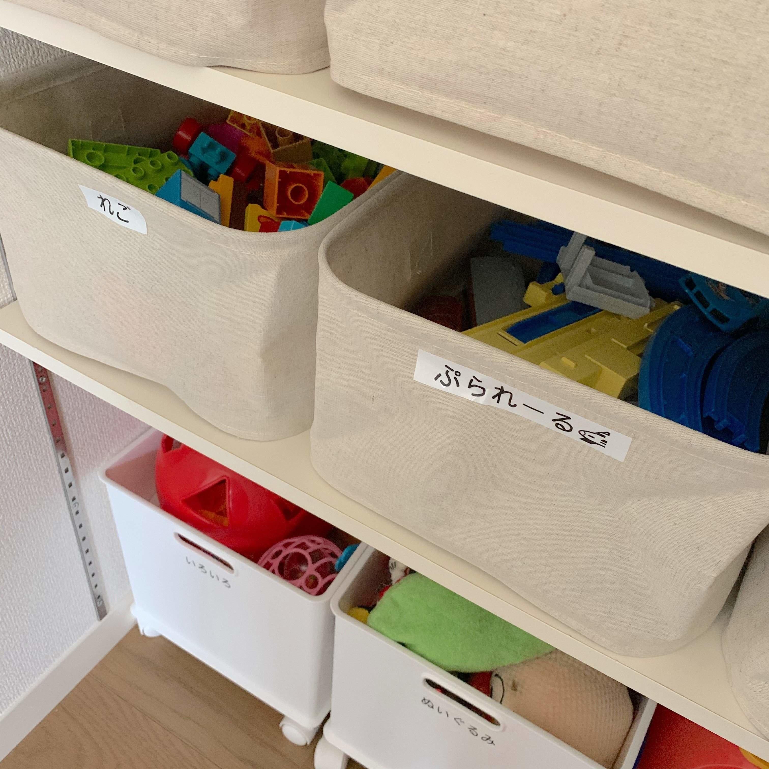 無印良品のソフトボックスがおすすめです。100均の似た商品も試してみましたが、素材が柔らかすぎて形が変わってしまい、子どもが持ち運んだりやおもちゃを出し入れしたりしにくように感じました。