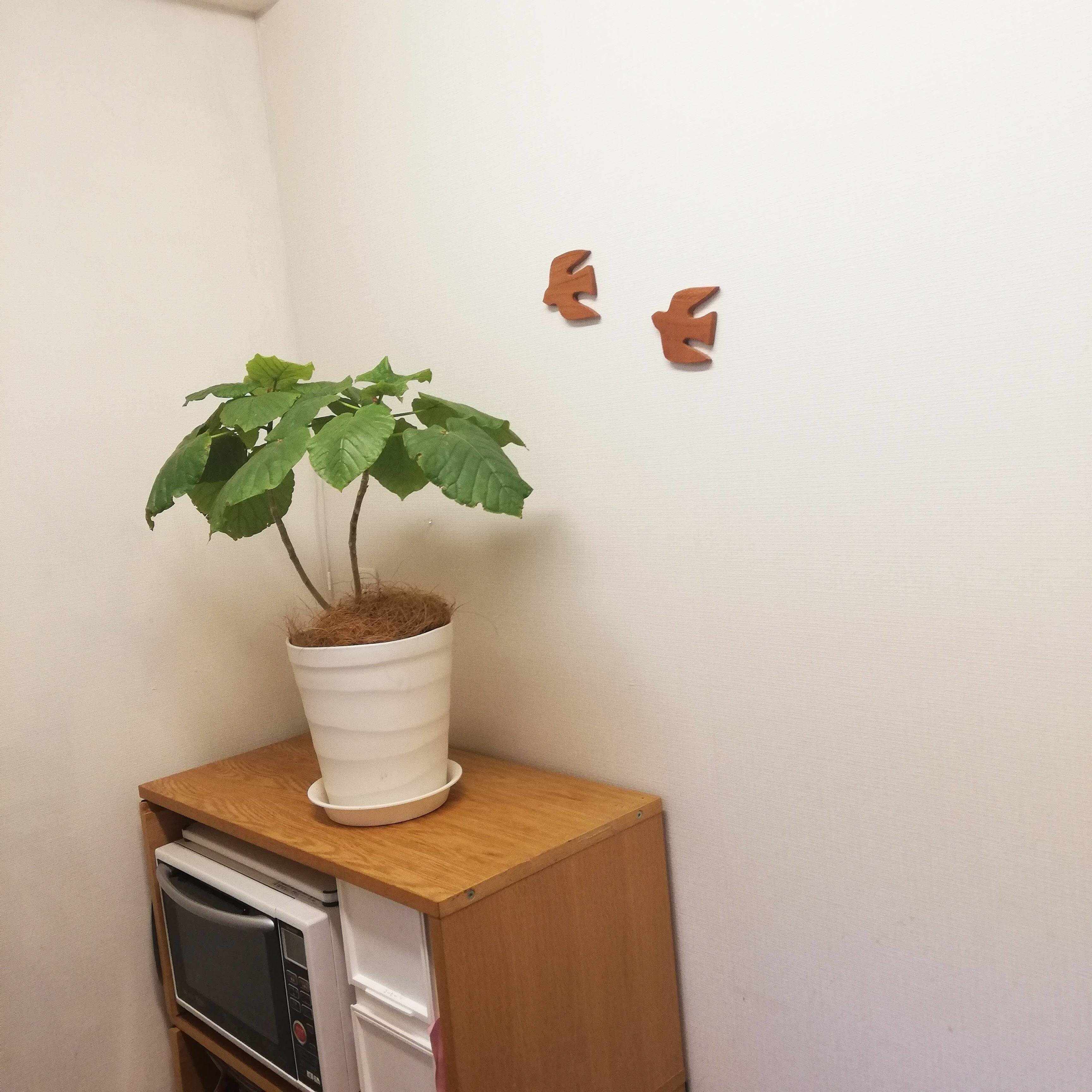 それでも置いてしまう時は、観葉植物や花を飾って、何となく置いてしまうスペースを与えないようにしています。この観葉植物を見る度にハッとさせられます。