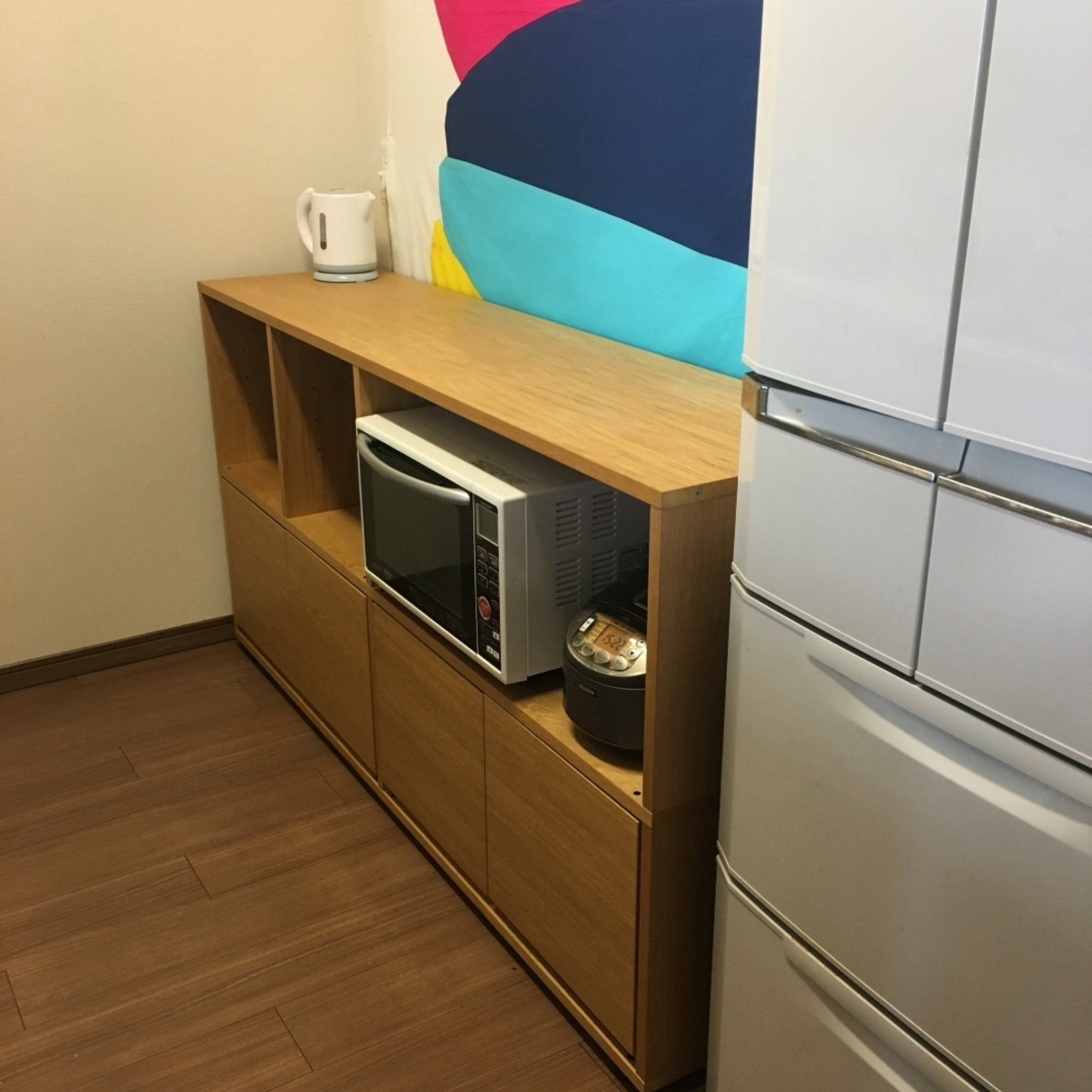 私がつい置いてしまう場所はこのキッチン背面のカウンター。意識してもなかなか置き癖が直らなかったので、思い切ってカウンターを自分で切って半分にしました。中に収納する物がなくなったのも要因です。このおかげで作業スペースも半分となりましたが、何か置いていたら作業もできない狭さなので置く事が少なくなりました。