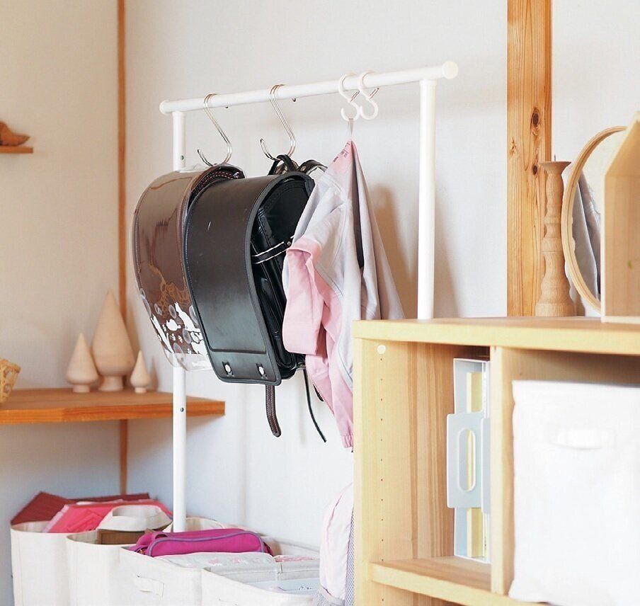 子どもの物は1カ所にまとめて収納したら、朝の支度もお風呂に入る準備も自分でしてくれるように。「長期休暇のタイミングで、成長に合わせて収納の高さや仕組みを見直しています」。