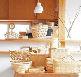 家の収納は、大好きな「カゴ」と決めています。流行り廃りがないし、バラバラに買いたしても見た目がそろって自然と統一感のある家に。出しっ放しが絵になるのもお気に入りです。