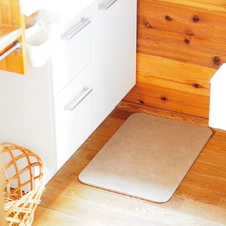 子どもがお風呂から出るたびに、床がびしょびしょ……。でも、いちいち拭くのも家族に声をかけるのも面倒だから、珪藻土のマットを採用。忙しい時間帯の小さなストレスが減りました。