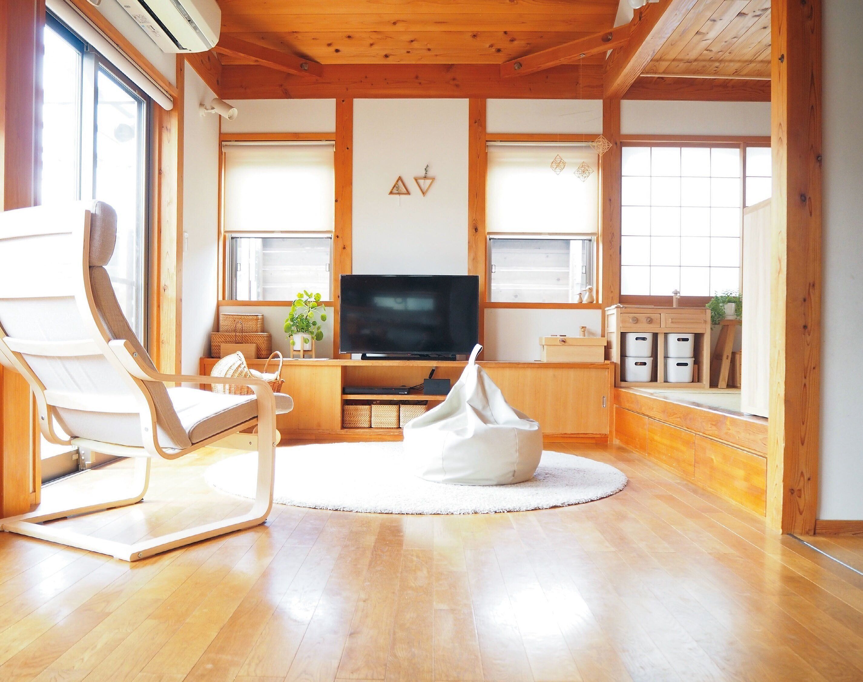 床には物を置かないようにしています。すぐに掃除機をかけられるし、家も広く見えるので、心がラクになります。