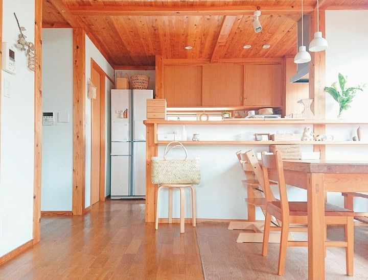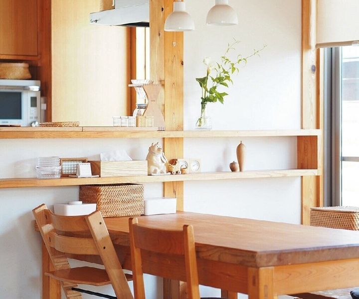 ダイニングの中心にあるテーブルが散らかっていると、家中が荒れている気分に。「使い終わった物を置きっ放しにするの禁止」と決めたら、家全体が整って見えて心にもゆとりができます。