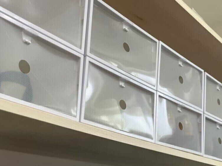使用頻度が低い靴の保管に便利です。靴を買った際についてくるシューズボックスは色もデザインもさまざまなので、ボックスを統一するだけでスッキリして見えますよ。1個あたりのサイズは約幅21×奥行29×高さ12cm。