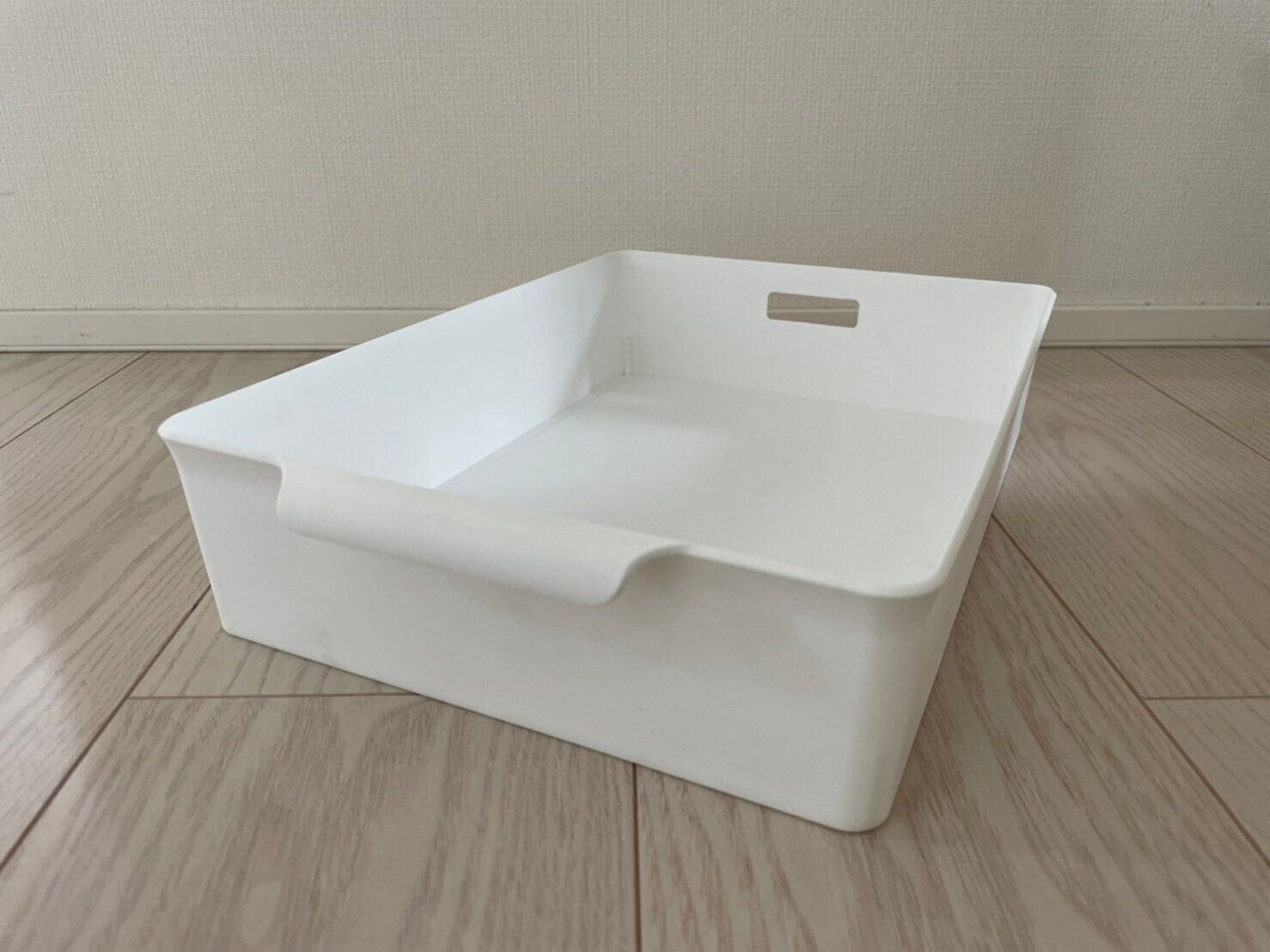 爪切りや体温計などのケアグッズの収納に適しています。半透明で中身に何が入っているか見えやすいです。奥行が浅いため、キッチンの背面収納などにもおすすめです。