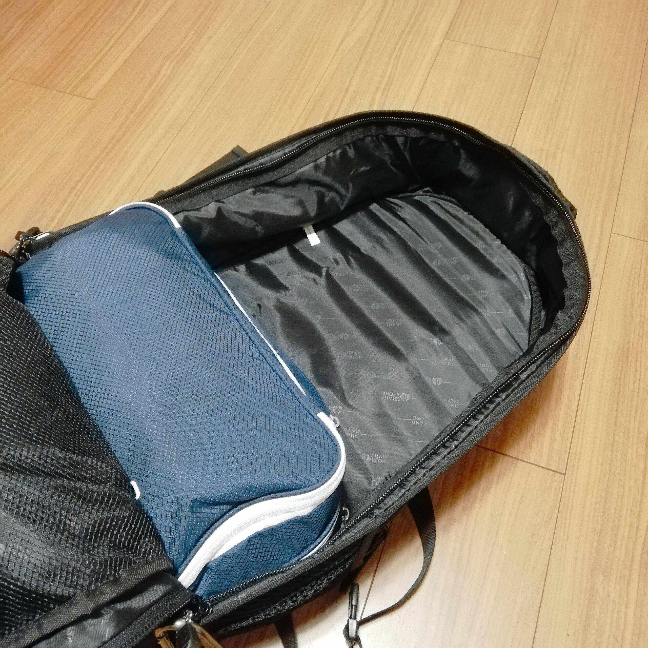 2人分の2日分の荷物を詰めてみたので、若干厚みは出ましたが広げた時よりもかなりコンパクトに収まりました。