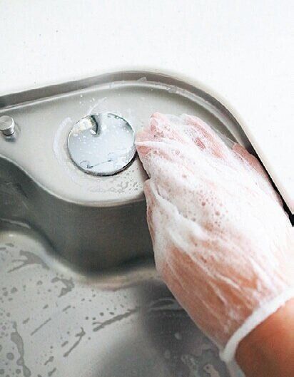 用途ごとに複数のスポンジがあると管理が大変。排水口ネットの交換前に新しいネットをスポンジ代わりに使ってシンク掃除をすませてしまうと、スポンジ管理が不要で時短にも効果的。