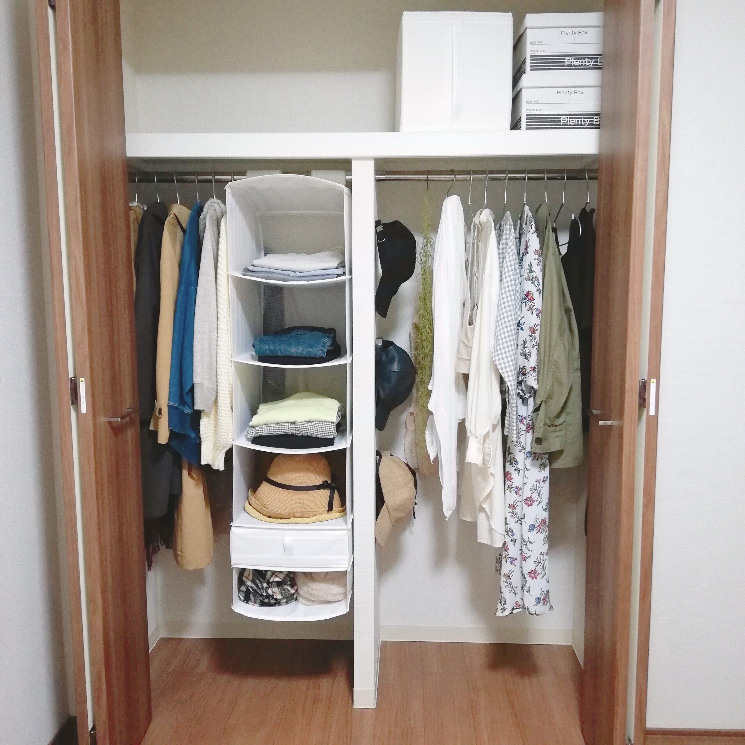ハンガー掛け+吊り収納にしてから、一目で全ての服を見渡せるようになったことが大きかったです。