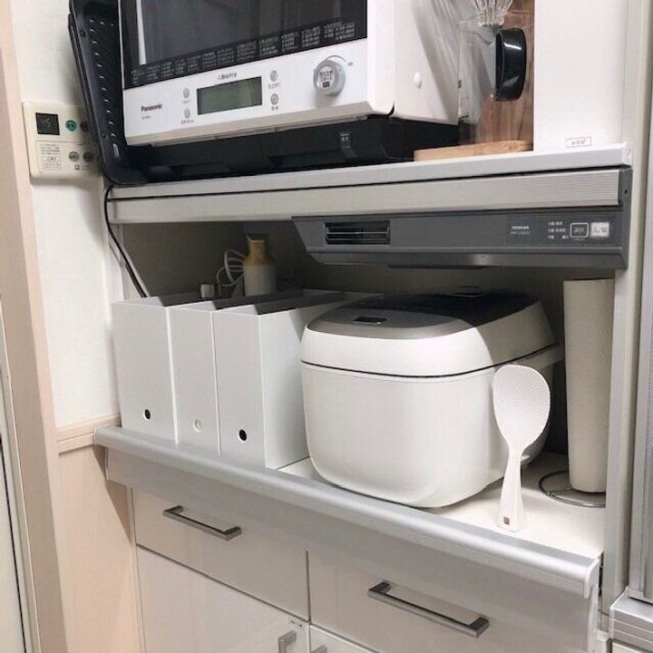今の自分はキッチン家電類はスッキリ収納、冷蔵庫は在庫管理しやすい収納に場所によって収納方法を変えています。