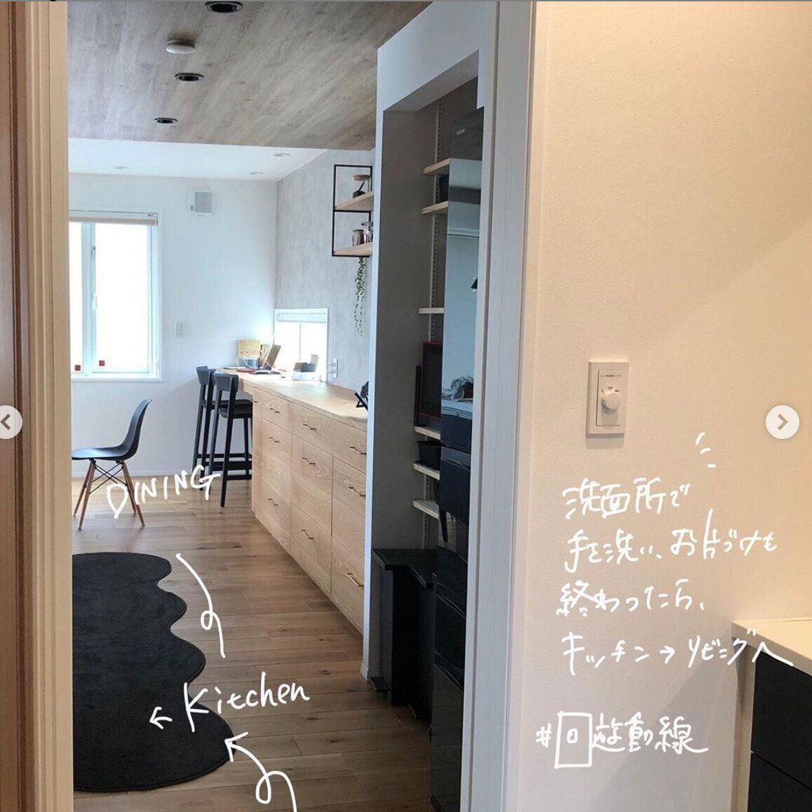忙しい毎日をラクするため、我が家は家づくりの際に、動きに無駄が出ない動線を意識した「回遊動線」の間取りにしました。