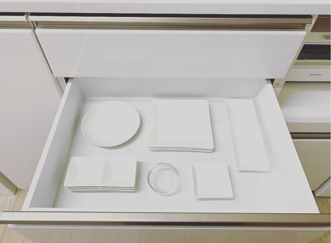 お茶碗、お椀など個人で使うものが決まっている食器は人数分だけ。おかずを盛りつけたりする小〜大皿は使う頻度を優先して、年に1回使うか使わない程度のものは全て処分します。家族専用のカトラリーは人数分もしくはそれ以下で揃えています。