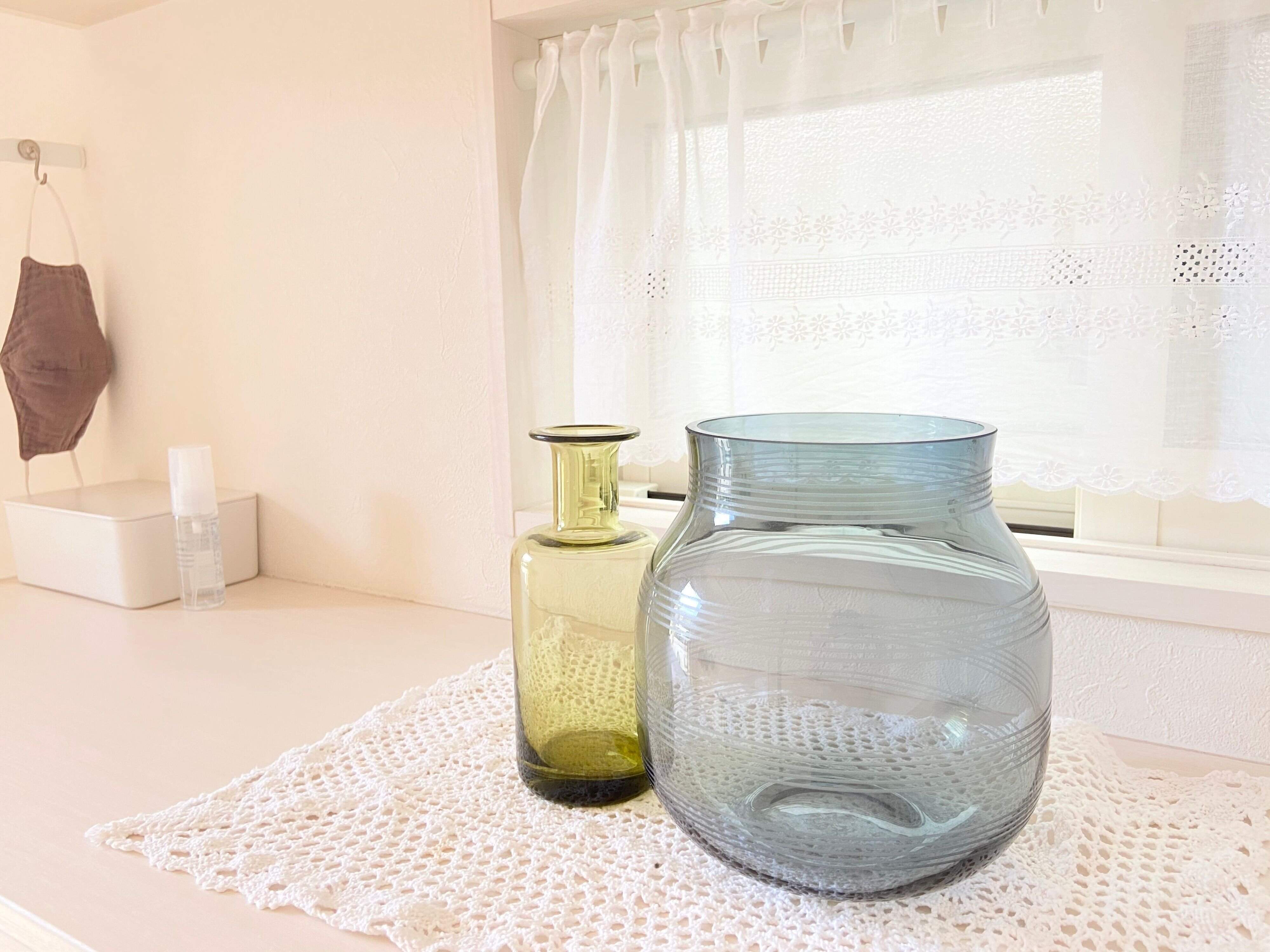 我が家では季節のインテリアを玄関だけ取り入れることにしているので、テーマに沿った小物を並べるか、花瓶と時々お花を置くという感じです。