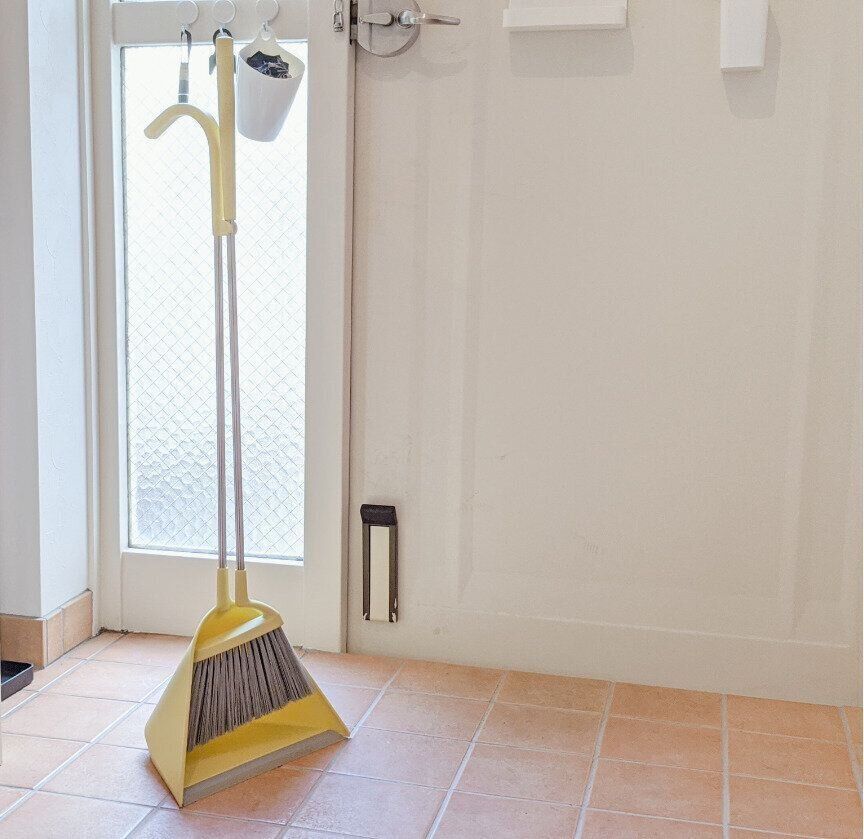 砂やほこりで汚れたらいつでもサッと掃除ができるように、あえてホウキはしまわず玄関に置いています。