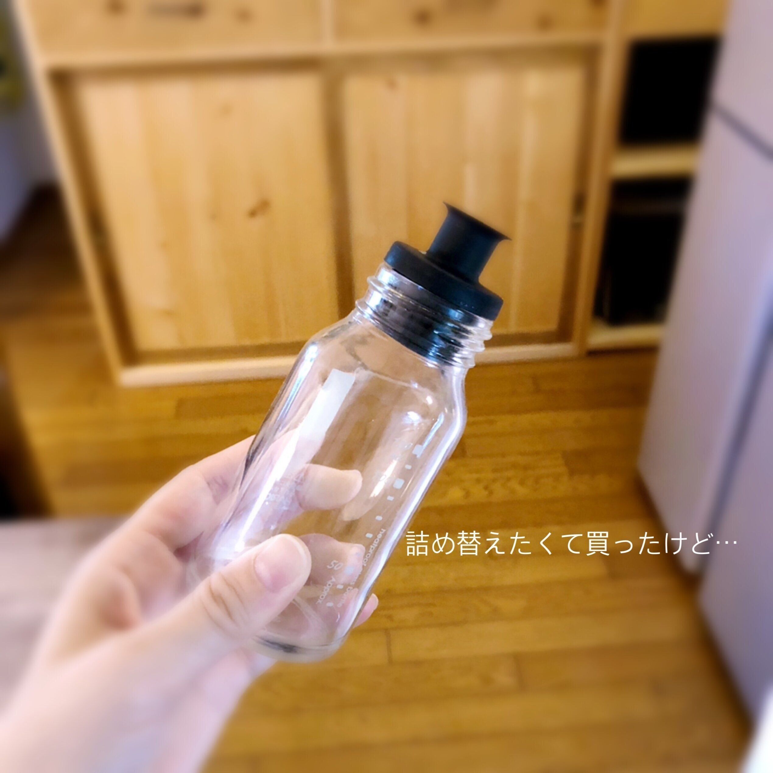 しかし、内容物詰め替え2巡目からが問題です。洗って詰め替えるとなると、まず洗う手間があります。そして完全に乾くまで洗いかごで水気を切り、その後もしばらくはどこかに置いておく必要があります。その間、調味料が必要なときにはどうしましょうか?