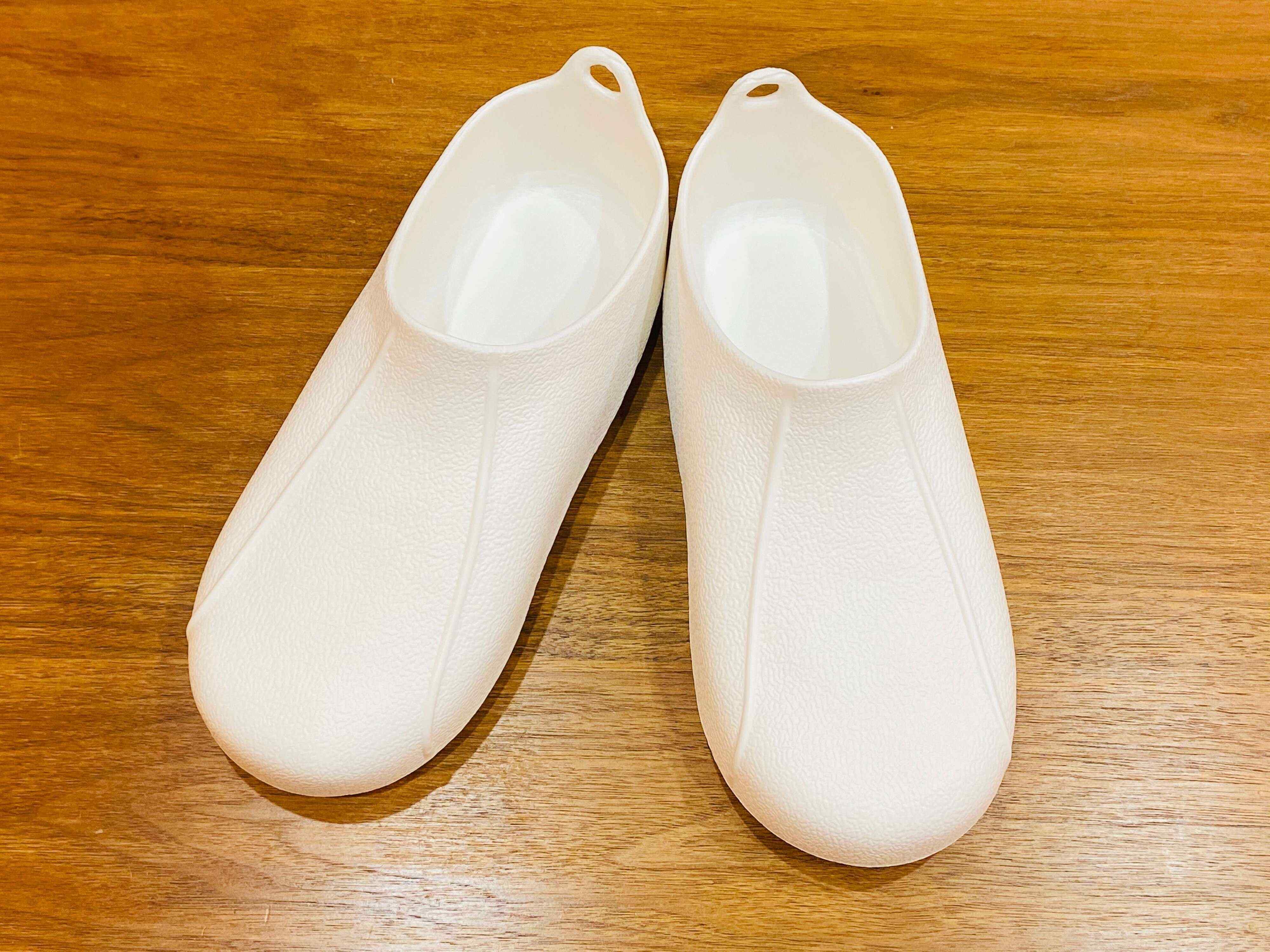 ブーツの裏も滑りにくいようになっていてお掃除のときも安心して履くことができますし、足まわりが深めなので水も入りづらいです。また、かかとの後ろに引っかけるための穴がついているので、収納するときも引っかけ収納で乾かせるのがとてもよいですね。