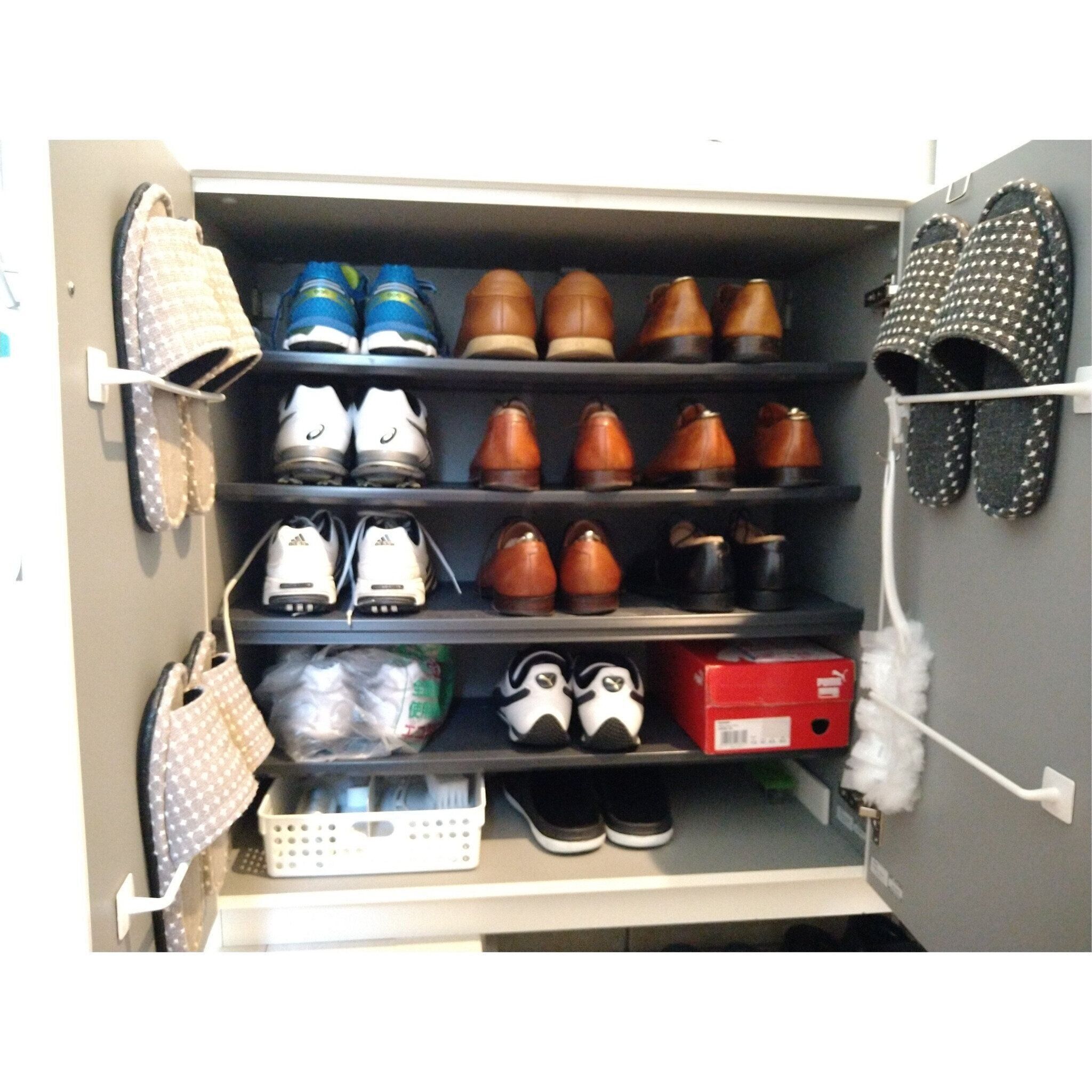 この他にもシューズボックス内には靴以外に防虫スプレー、ウエットティッシュ、ガムテープやひもなどの梱包グッズ、ミニ工具を収納しています。