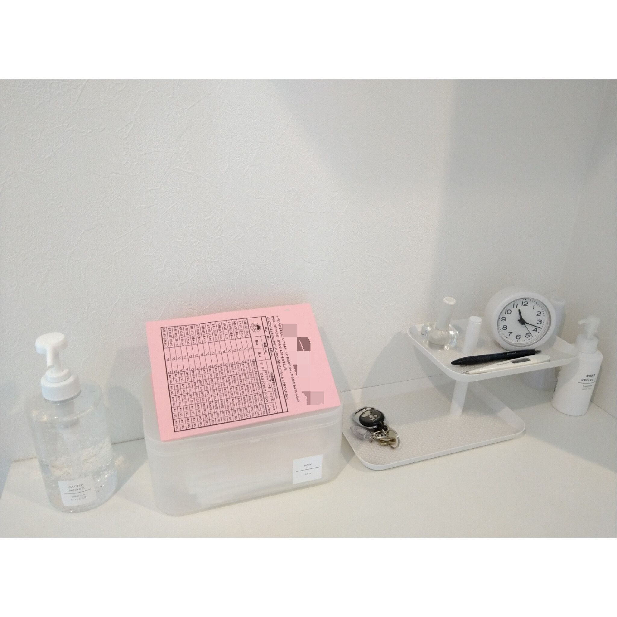 もともと体温計や筆記用具が収納されているリビングに体調チェック表を置いていましたが、バタバタしているとすっかり忘れて登校前に気づくパターンが多かったので玄関に移動しました。