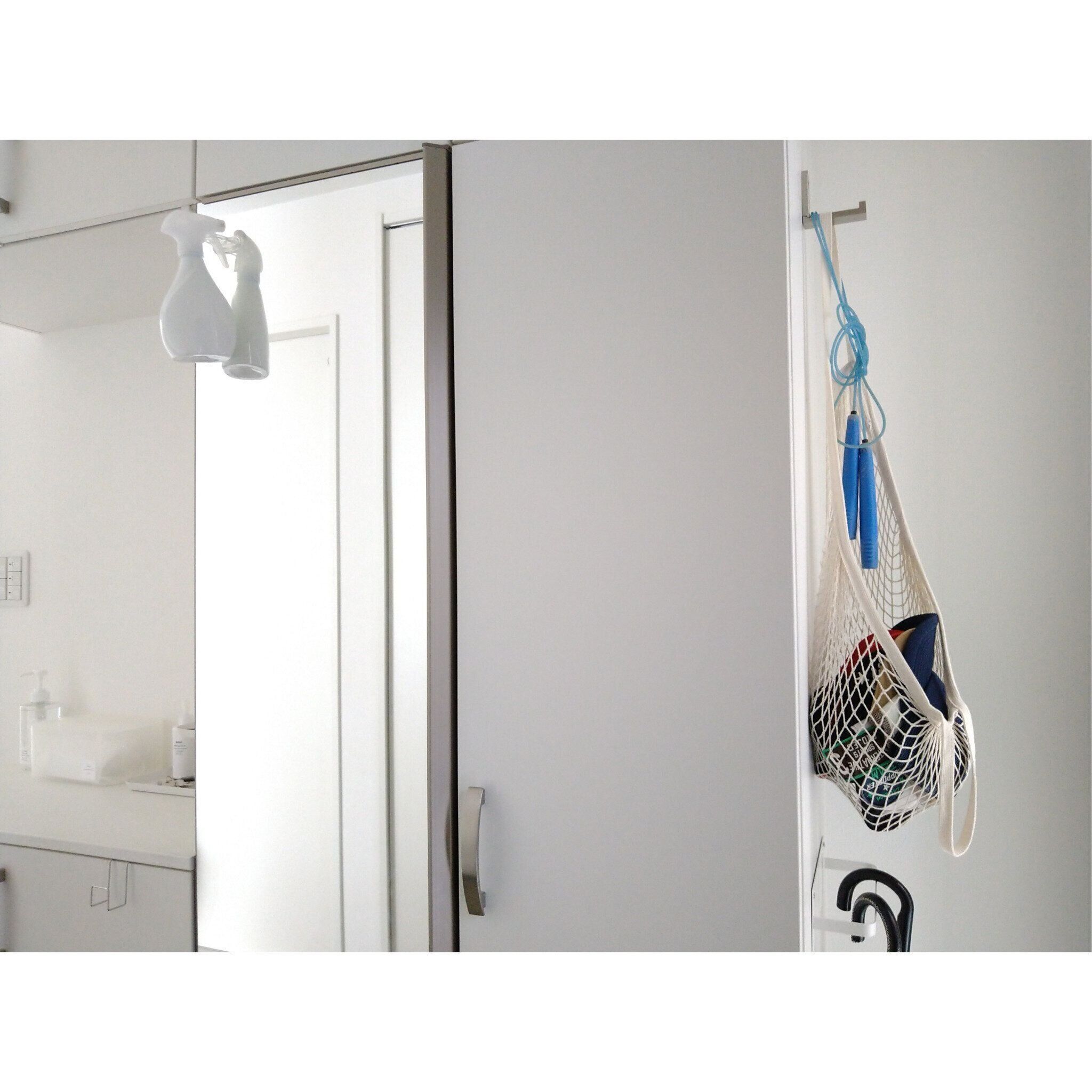 下駄箱の扉裏はフックを使って掛ける収納にしています。