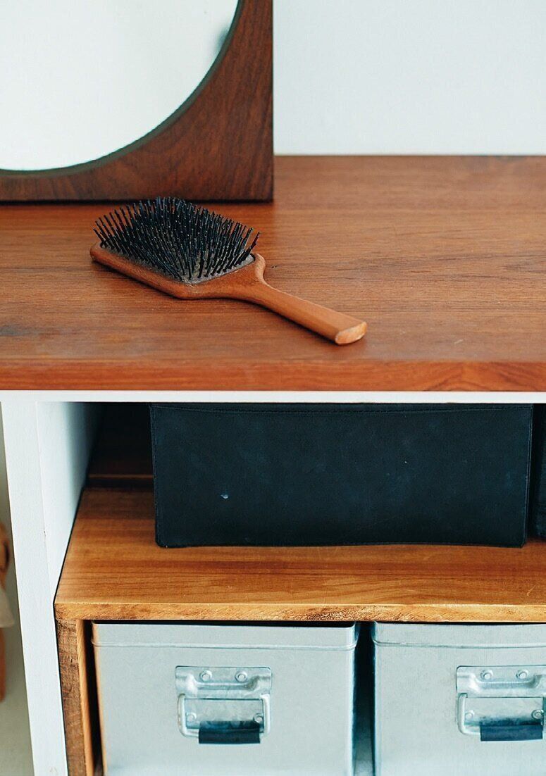 最初に物を減らしたのは、化粧品の引き出し。使っていない物、古い物を処分したら、メイクがはかどるように。