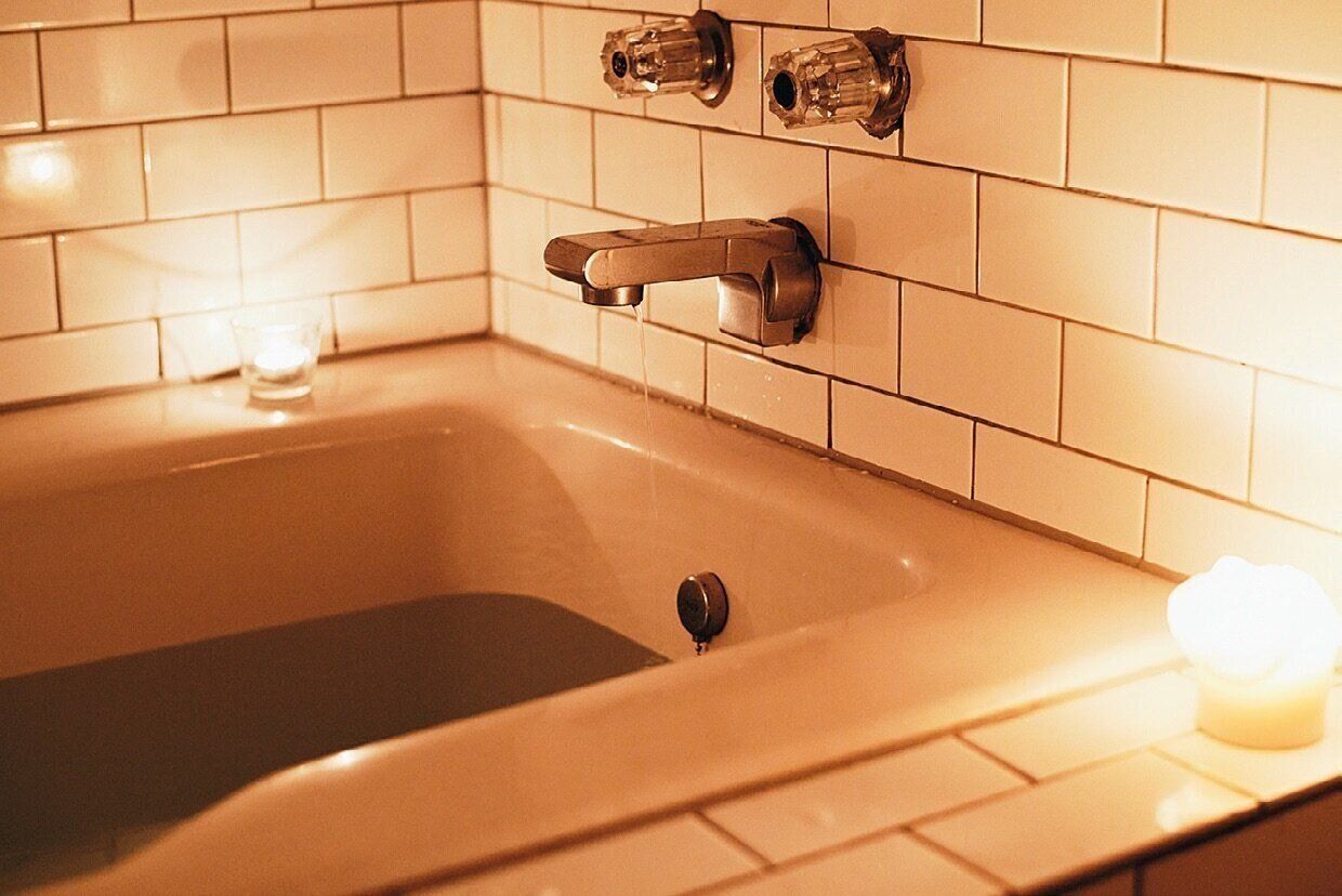 明るいうちからお風呂に入り、蛇口からちょろちょろとお湯を流したら、かけ流し温泉風に。お風呂上りはおもちゃのマイクでカラオケタイムでストレス発散!