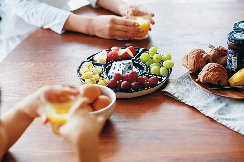 いつもと同じ朝食も大皿に盛り合わせてビュッフェ風