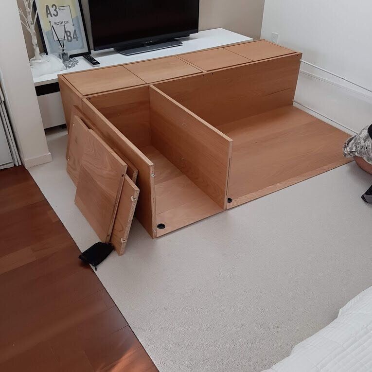 リサイクル業者を探し買取りしてもらう事になりました。家具を手放すのはとても勇気が必要でしたが、分解~搬出まで済んだ頃にはとても気持ちが軽く肩の荷が下りた気分に。買取費用も頂けたので新しいテレビ台の購入費用に充てられました。