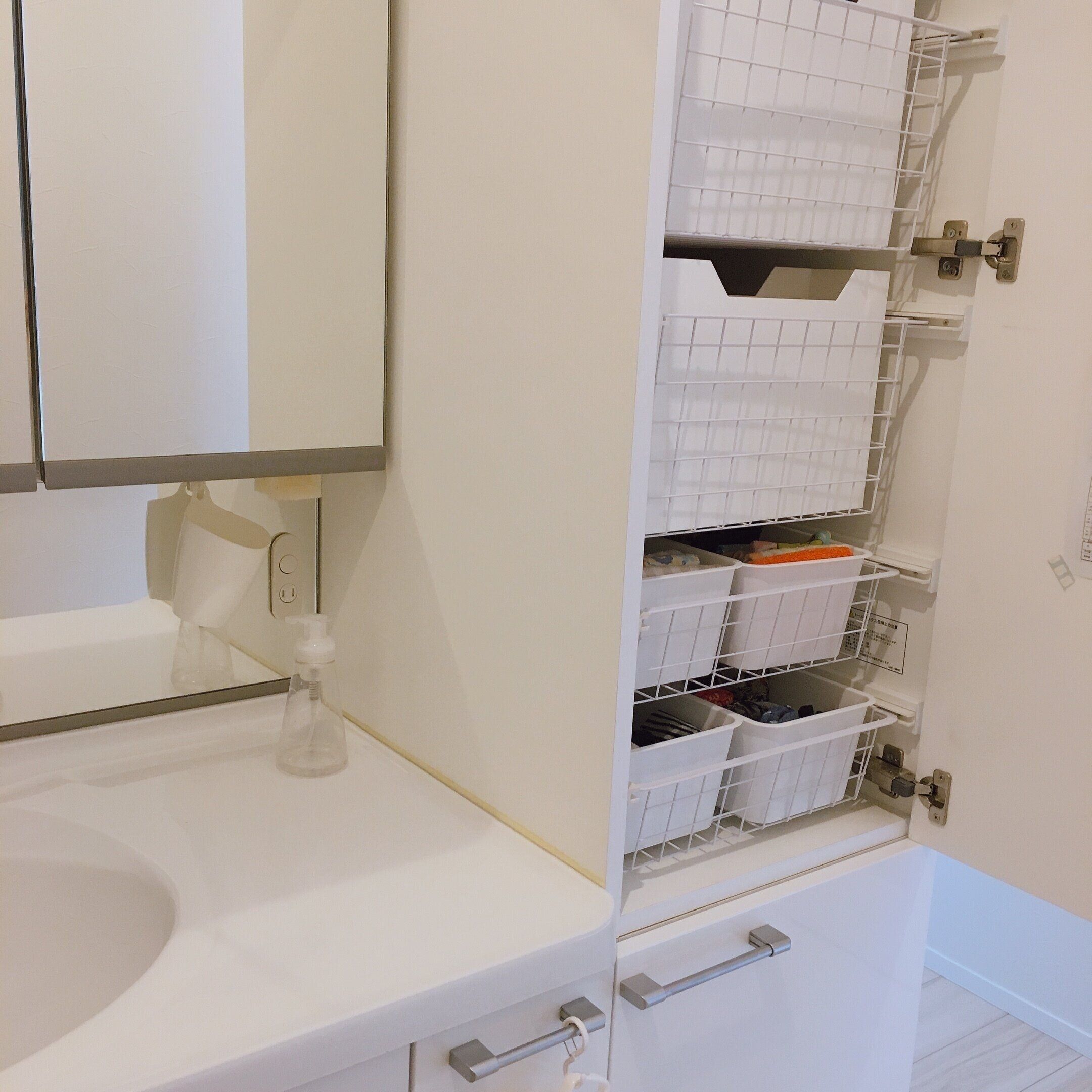 洗面所横に必要なモノを収納する