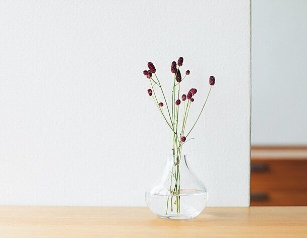 癒やしをもらえる花は、部屋に取り入れたいアイテム。1種類×数本で生けると、色合わせ不要でセンスよく決まります。花器と花器から出す花の長さは1:1がグッドバランス。