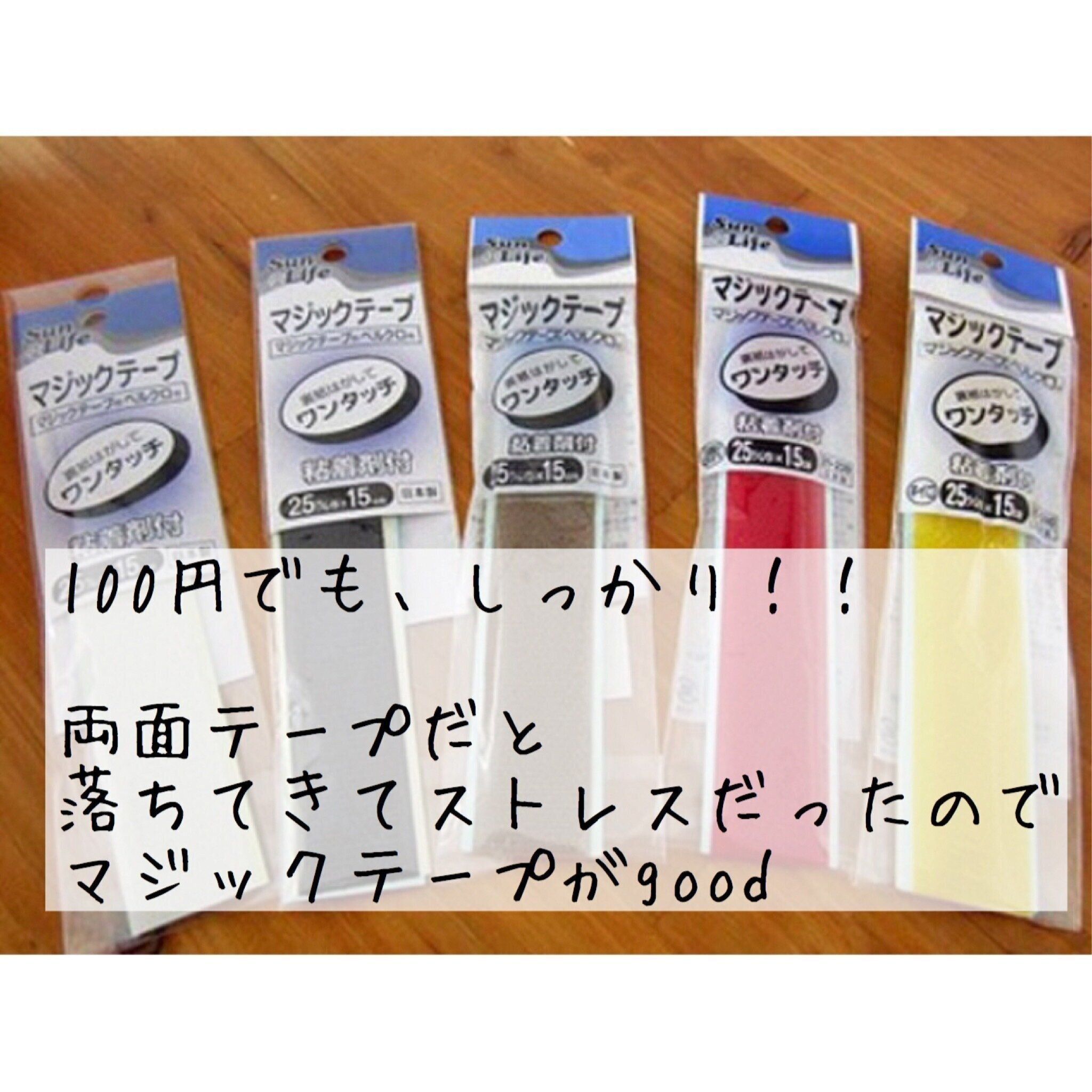 横向きで固定する際に、普通の両面テープ、強力両面テープを使っていましたが、落ちやすかったので、このように、両面テープ付きマジックテープをつけることで解決できます。