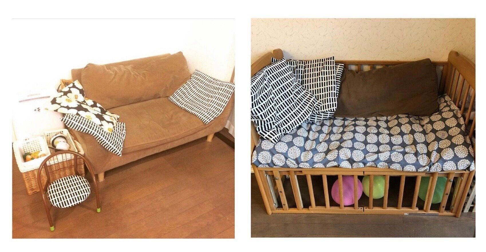 新しいものを買うことも検討しましたが、ちょうど使わなくなった娘のベビーベットがあったので、補強して改造し、ソファーとして使うことにしました。