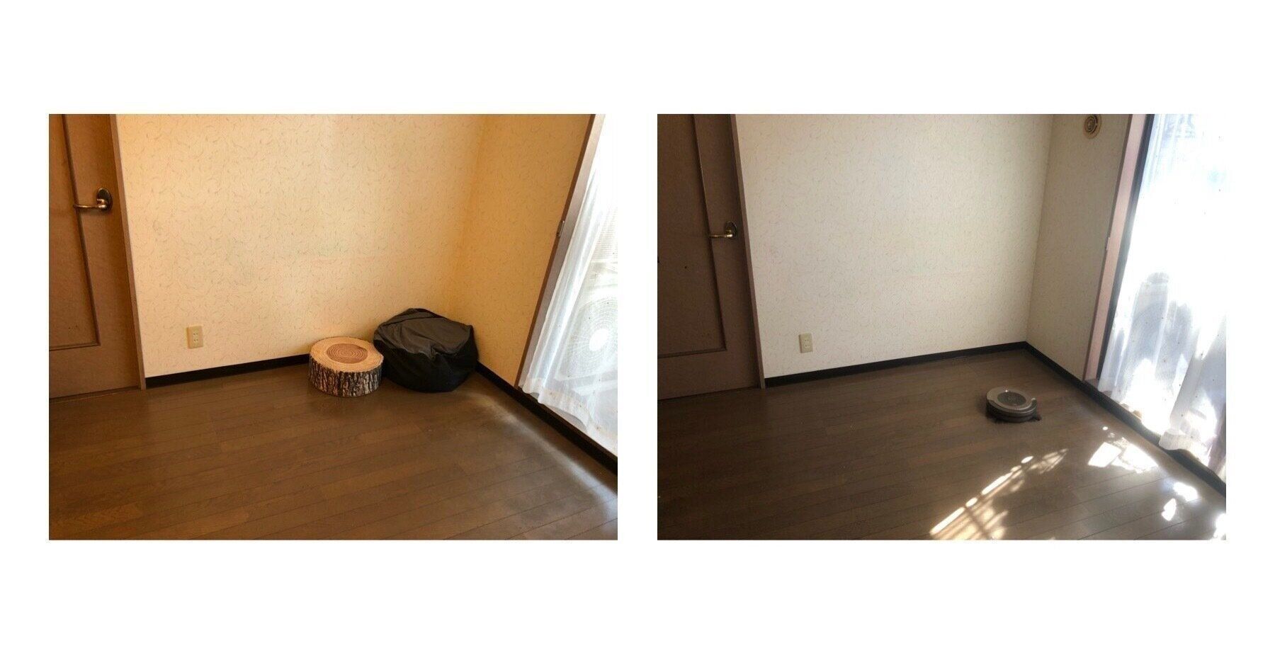 ソファーがないとテレビを観るときゆっくりできないと思っていましたが、床にクッションでも全然大丈夫。お掃除ロボもスイスイ動けます。部屋も広くなりました。