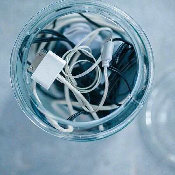 昔のパソコンのケーブルや携帯電話の充電器は、つい取っておきがち。ほこりはたまるし邪魔だし、なによりもう使いません。今後は、本体と付属品をまとめて廃棄するルールに。