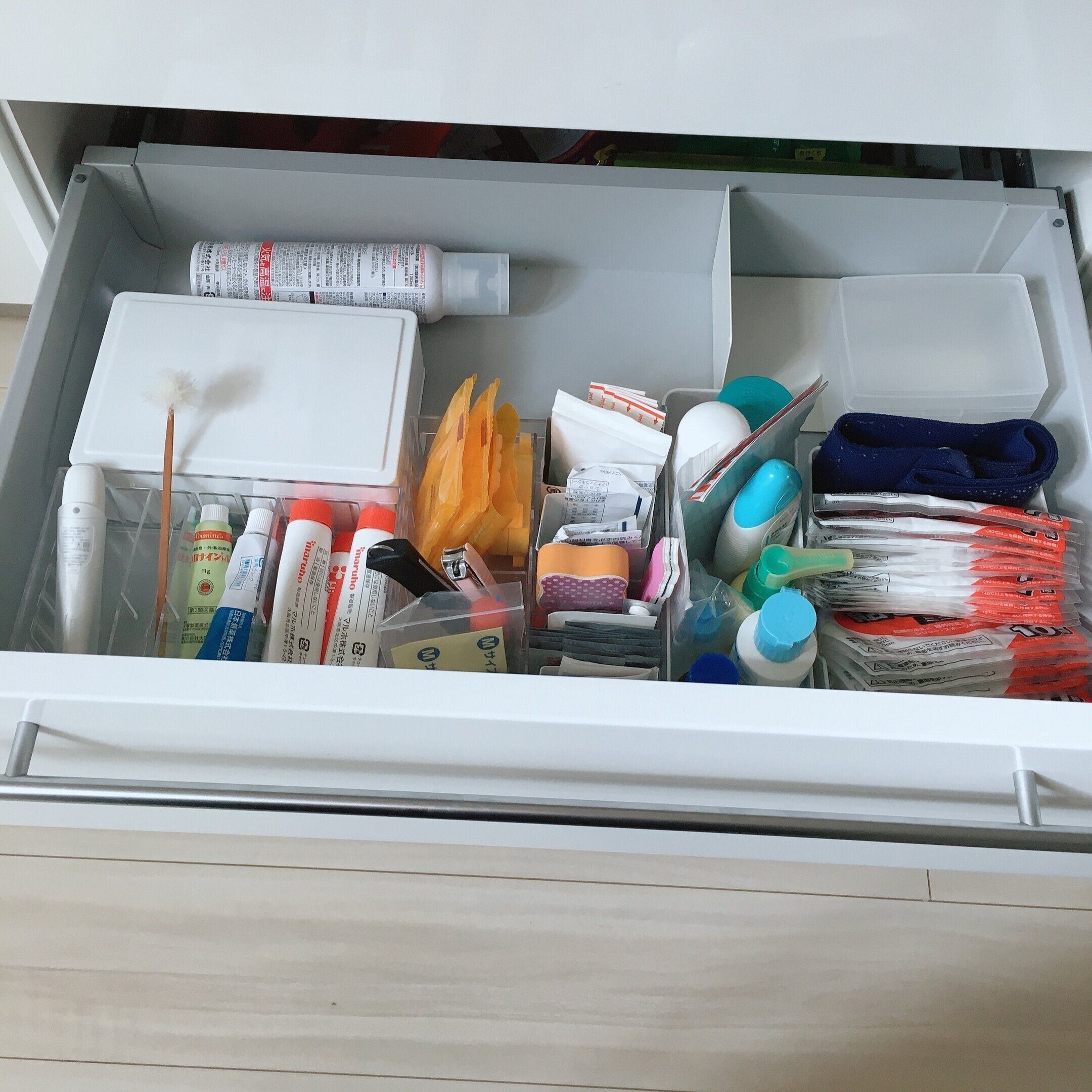 体温計や耳かき、保湿クリームなど、家族がよく使うモノが入っています。