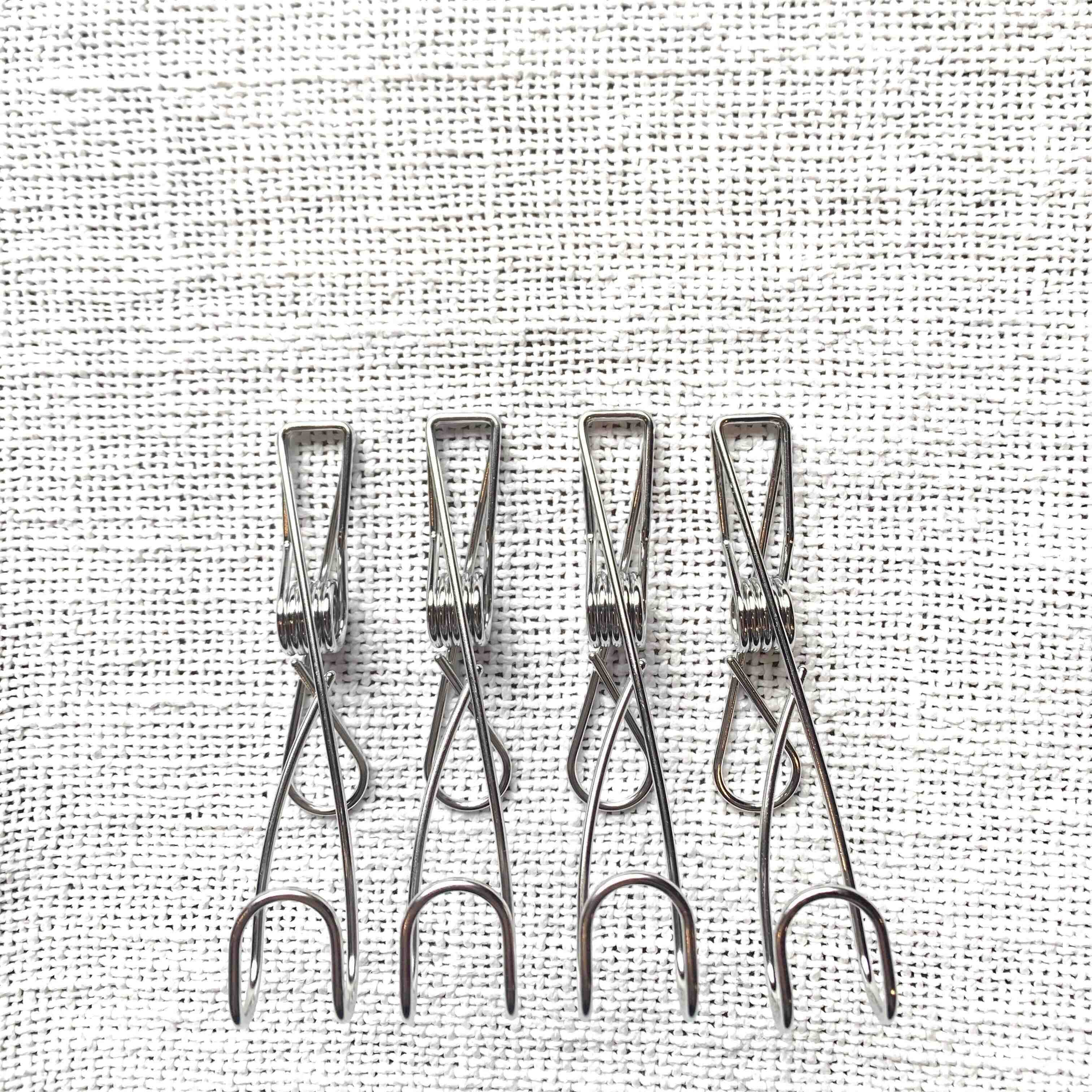我が家が吊るす収納として愛用しているのは、無印良品のステンレスひっかけるワイヤークリップです。4個入りで390円(税込)です。