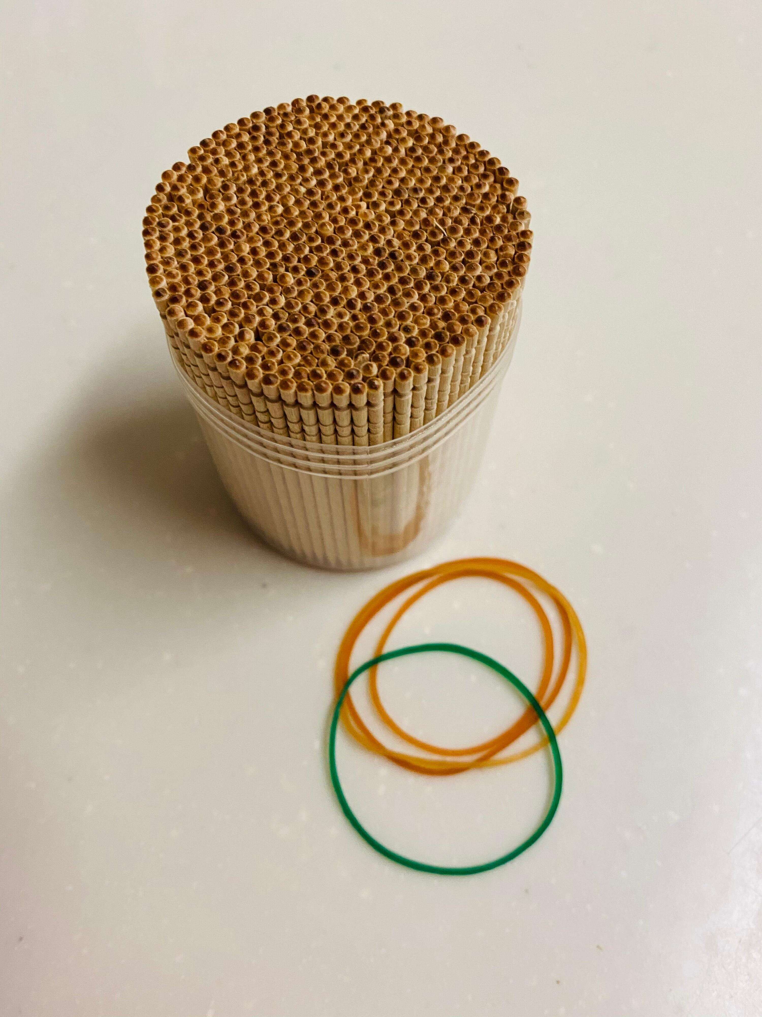 輪ゴムや爪楊枝ってコストパフォーマンスがすごくいいので安価の割になかなか減りません。