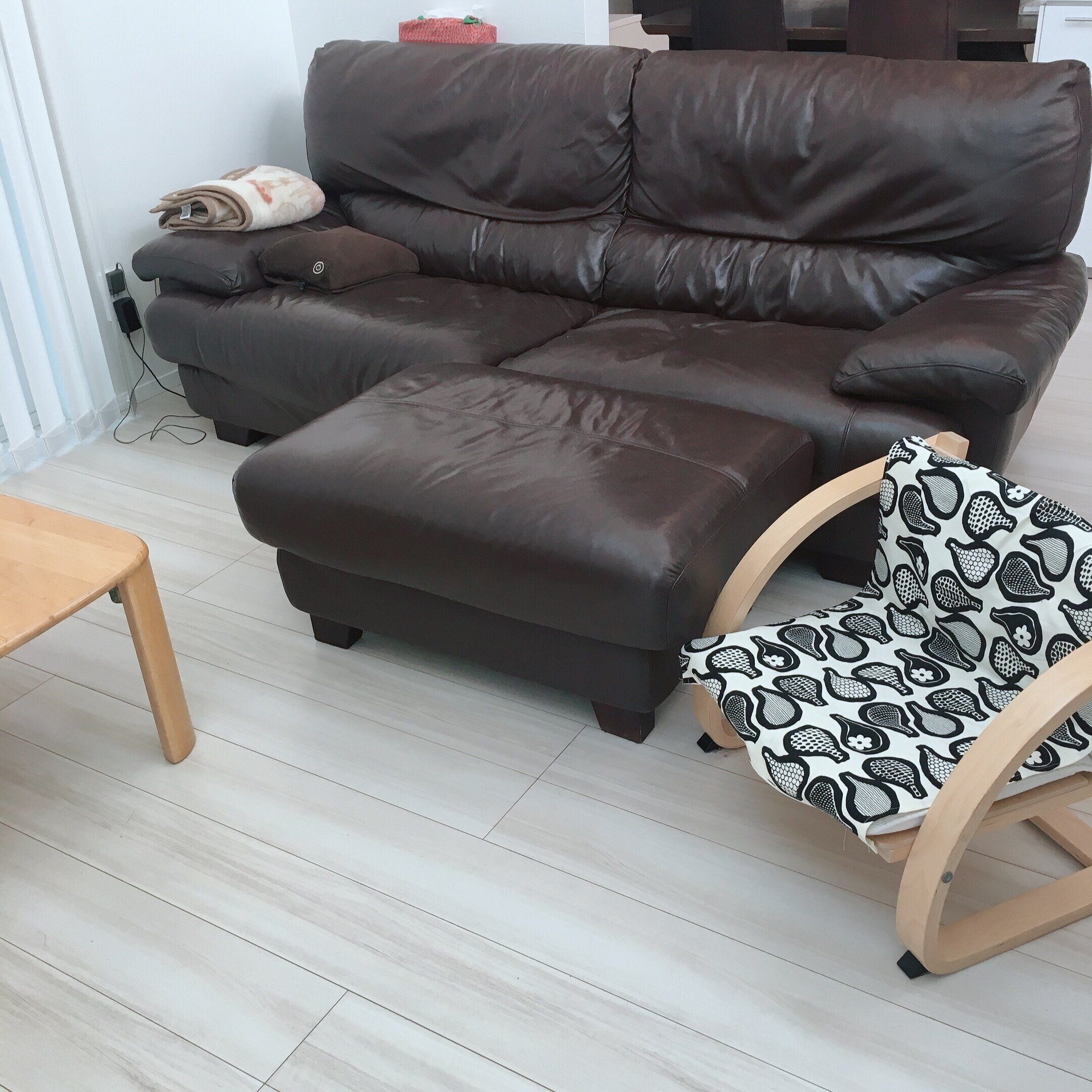 わが家の愛用のソファとオットマン。そしてIKEAで購入したチェア。