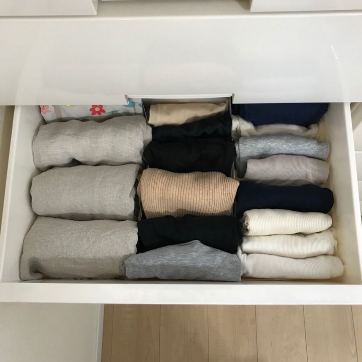 収納ケースを使う前も立てて収納してましたが、仕切りがあることで畳み方の目安ができるので揃えやすくなったそうです。