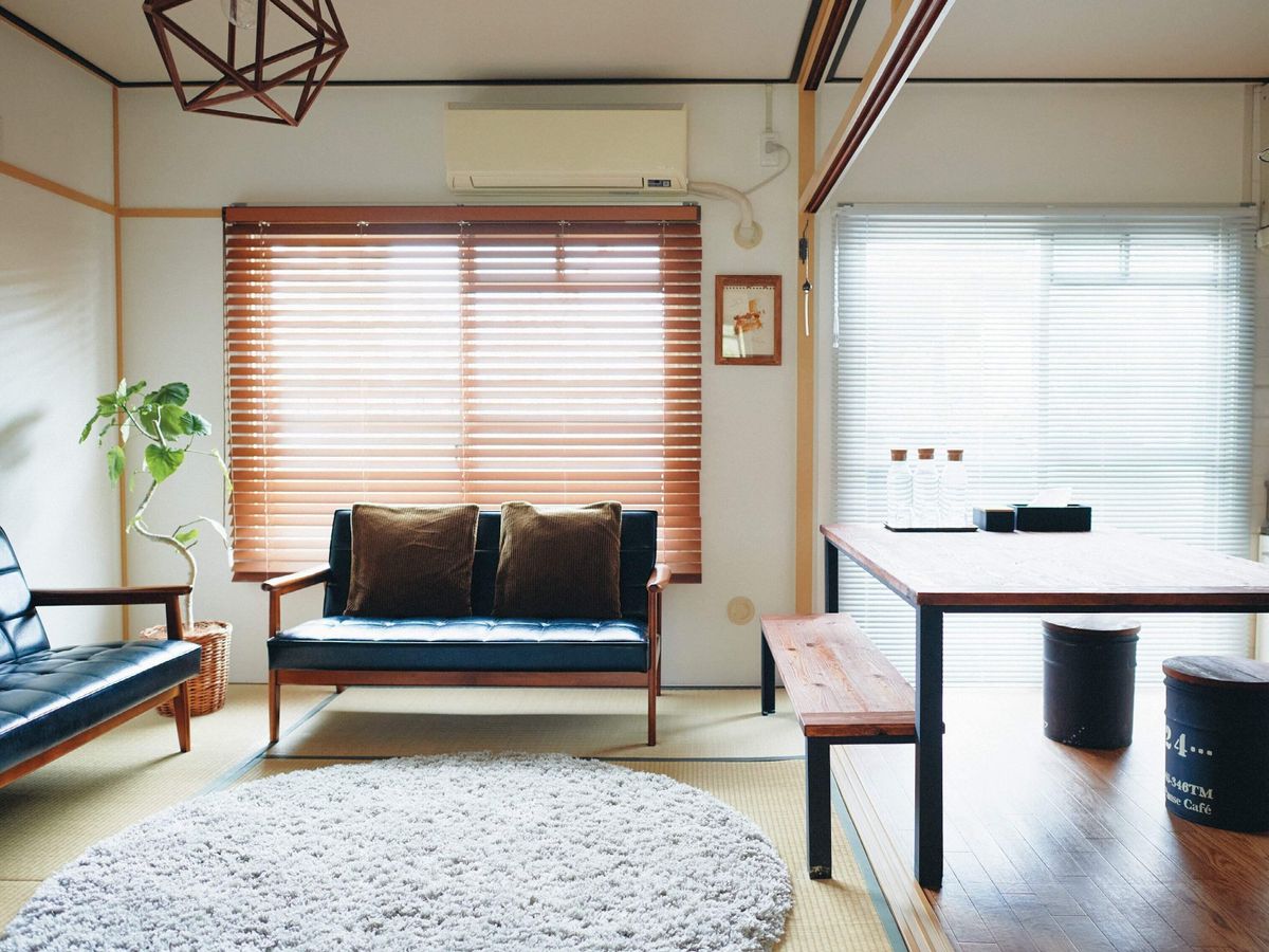 引っ越しを機に2段ベッドや食器棚などの大きな家具を処分。夫が手作りしたテーブルはコンパクトな家でもぴったり収まり、掃除もラク。ベンチとスツールも手作りです!