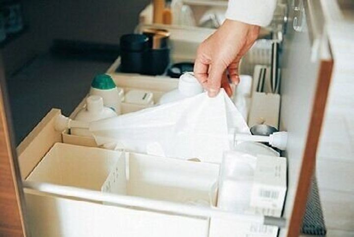 ゴミ袋は突っぱり棒に直接掛けると取りやすくなる